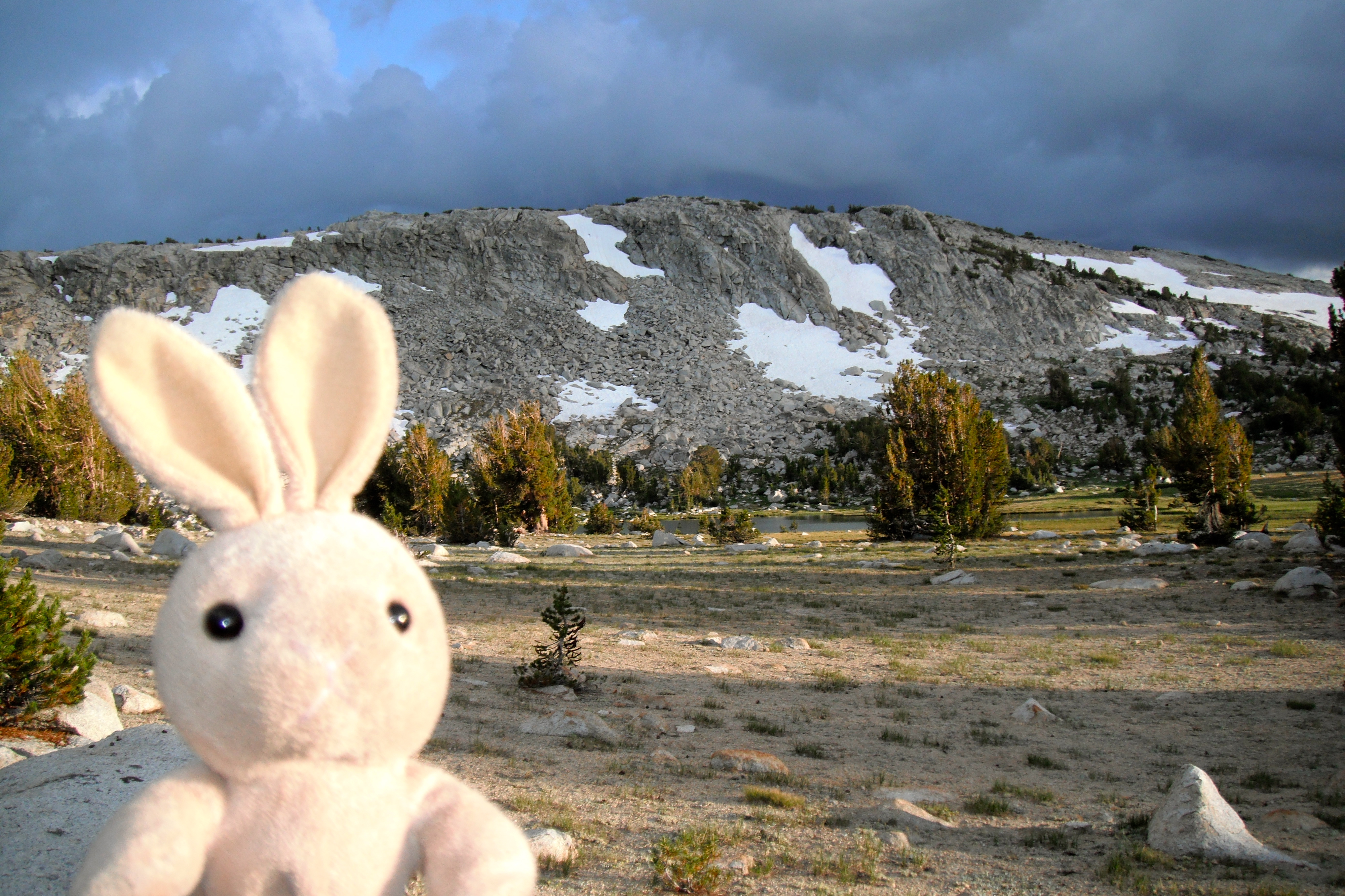 Evelyn Lake is off in the distance just below that mountain, but here is where we set up camp.